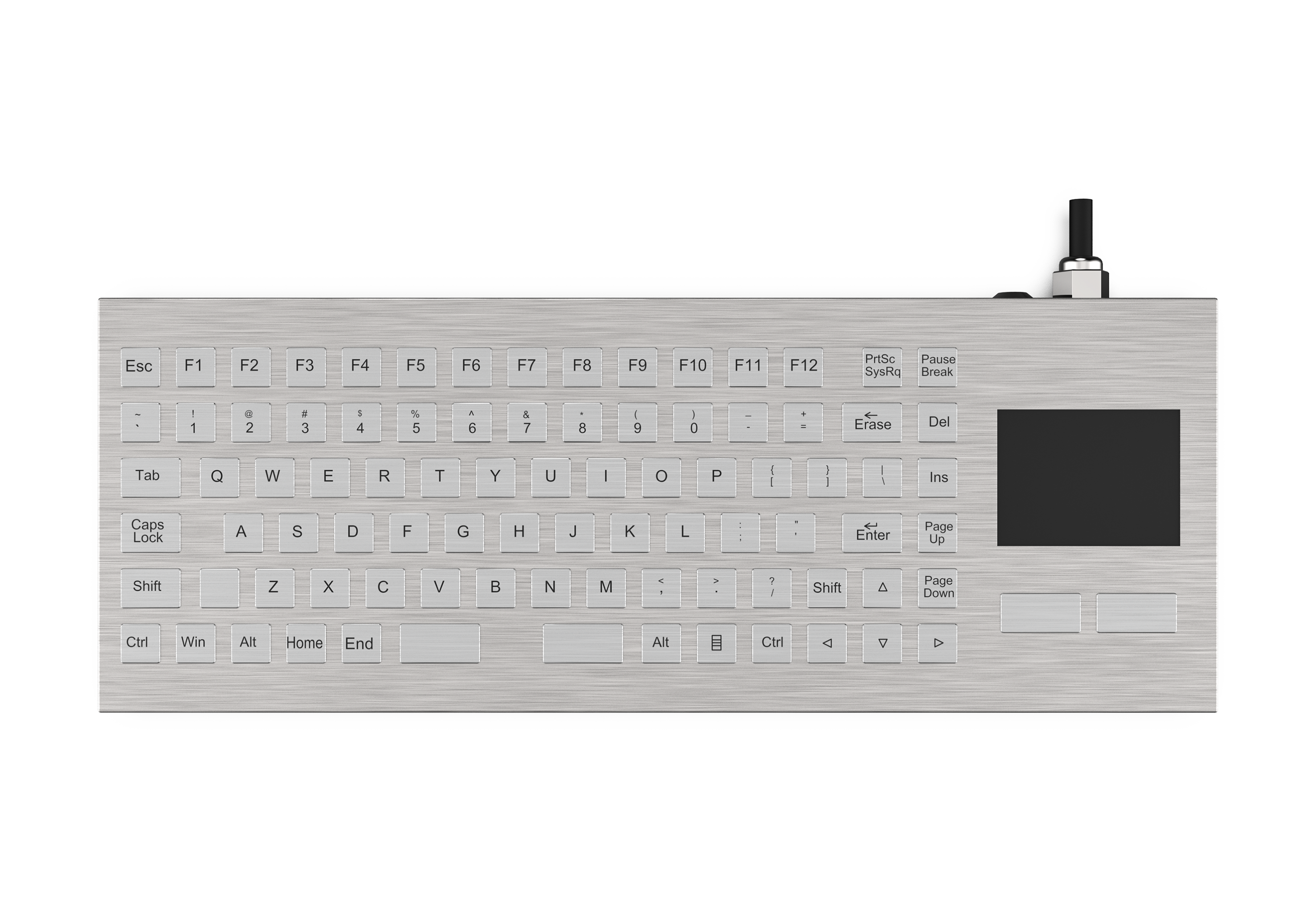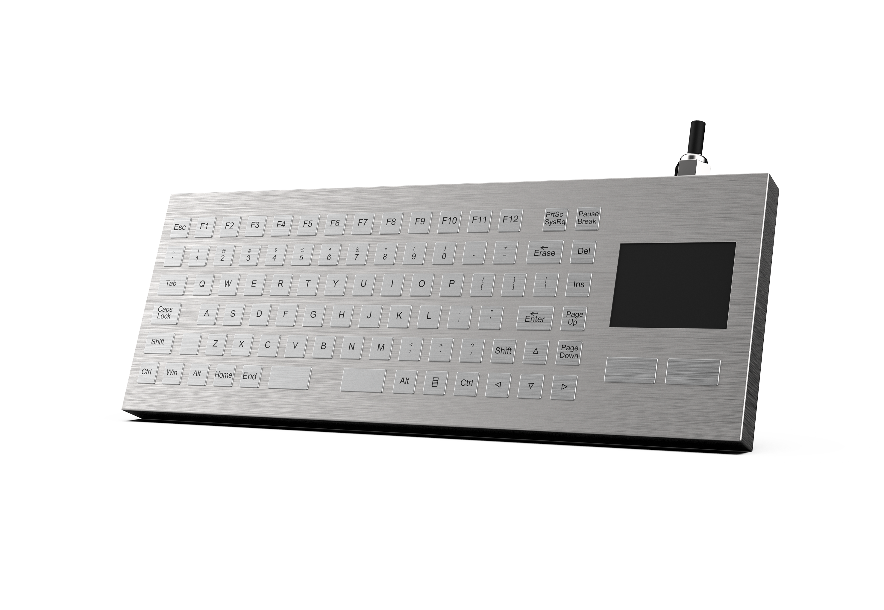 采用不銹鋼外殼,內部灌封工藝,滿足 IP67 防護標準, 包含90個鍵功能鍵盤和1個鼠標功能的觸摸板。